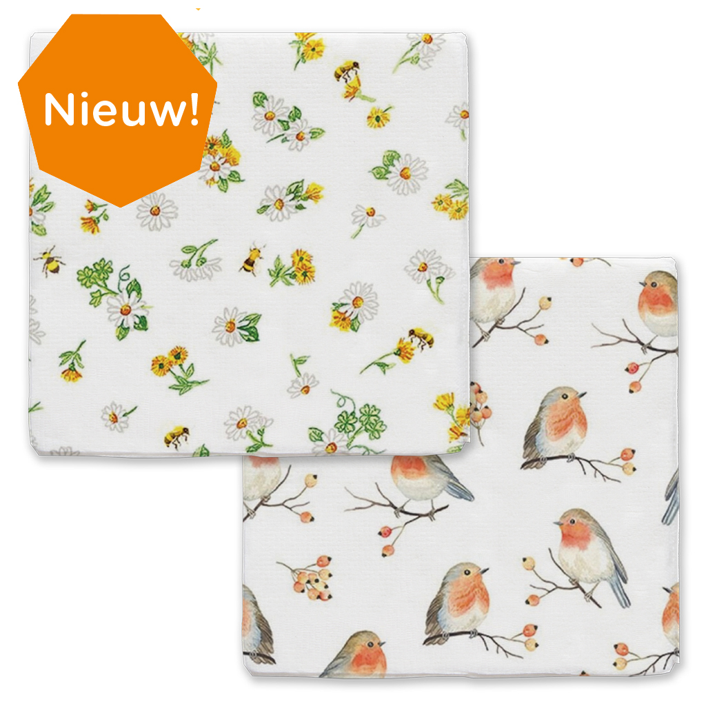 De Zonnebloem servetten Margrieten en Roodborstjes