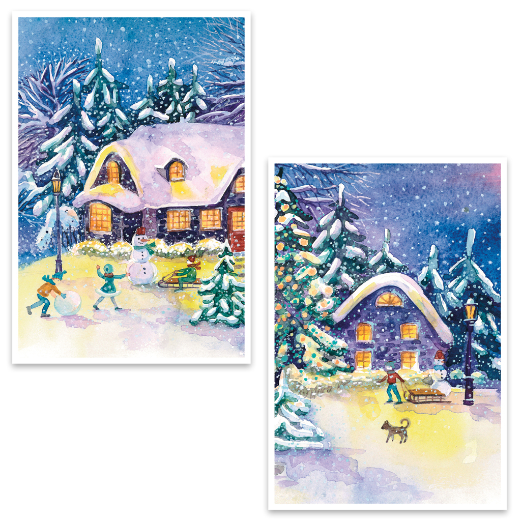 Kerstkaarten set met het thema spelende kinderen.