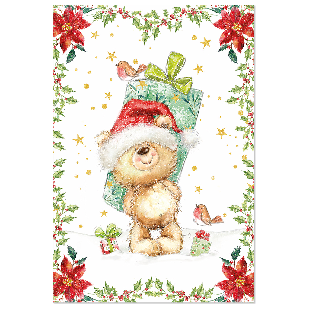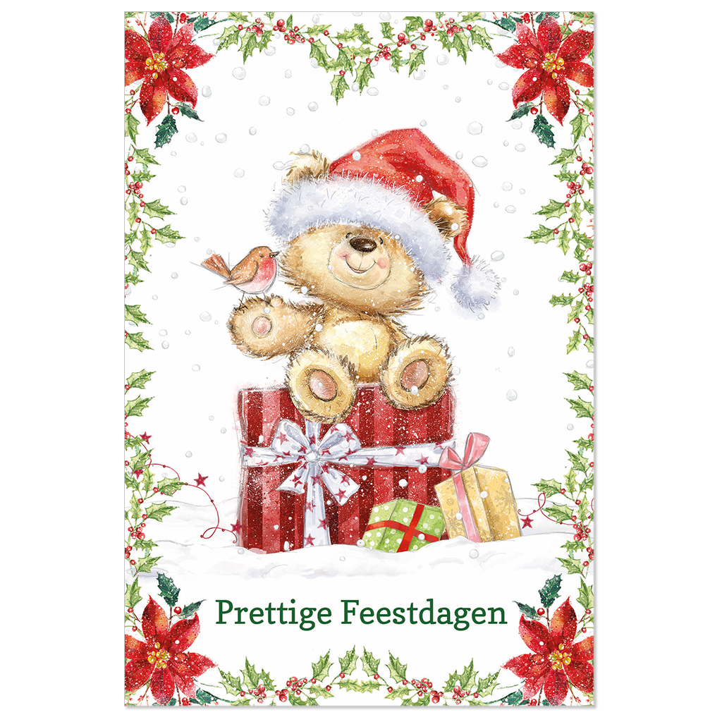 Kerstkaarten set met het thema lieve geïllustreerde beertjes in kerst thema.