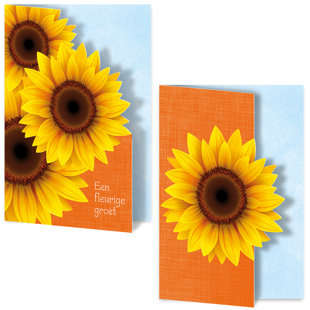 Wenskaarten set met het thema vrolijke zonnebloemkaarten met een uitstansing.
