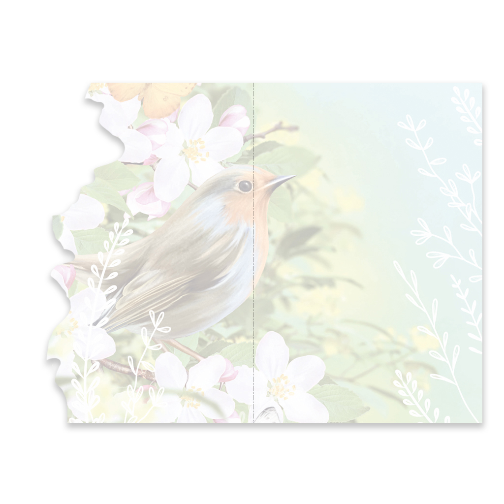 Binnenzijde van de kaarten heeft geen tekst maar wel een teruggedrukte afbeelding.