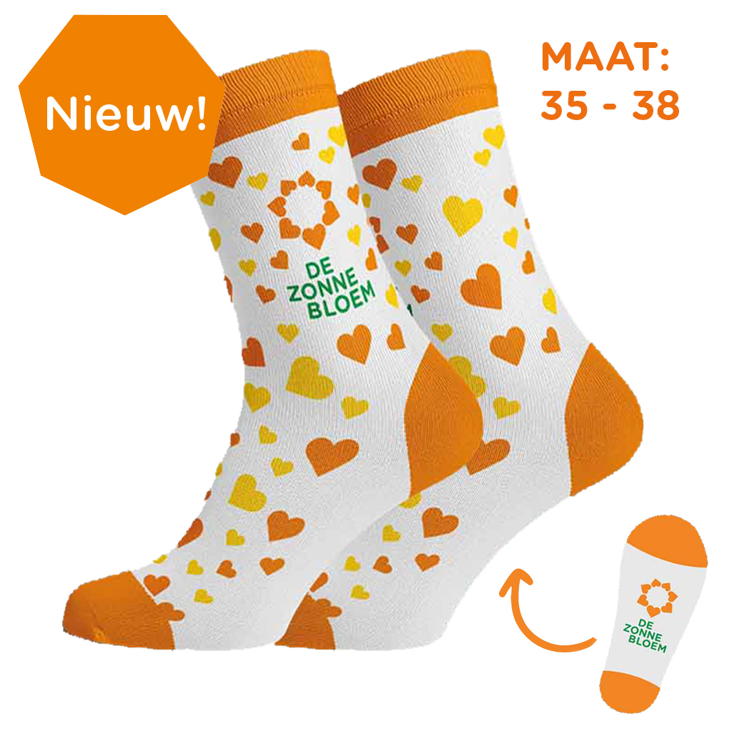 Nieuw in ons assortiment! De Zonnebloem sokken. Een prachtig paar sokken met een vrolijk dessin waar u in gezien mag worden!